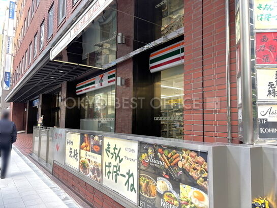 地下1階が飲食街、1階にはセブンイレブンやキンコーズが入居するビジネス利便性。エレベーターは3基設置されています。