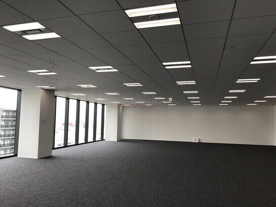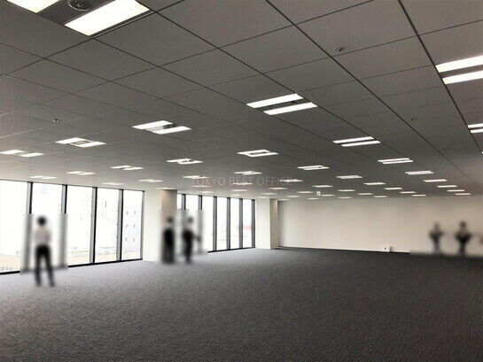 基準階フロア面積は138.01坪、貸室は幅29m超、天井高2.8mの大型ガラスの明るく開放的な無柱空間。グリッドシステム天井でレイアウトも自在。