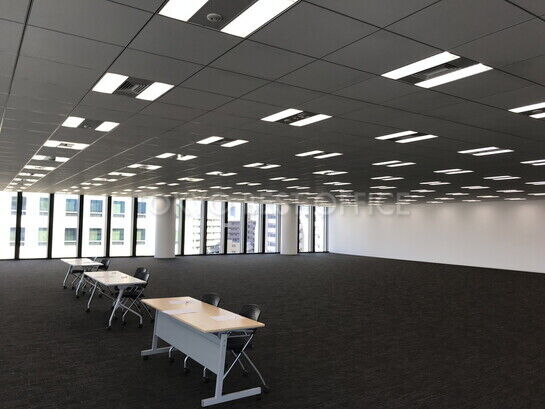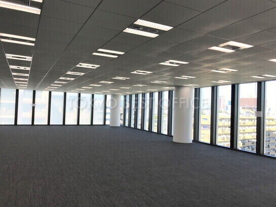 基準階貸室面積は300.18坪、天井高は2800mm、3面ガラス窓による明るく開放的な無柱整形空間、レイアウト効率も良好です。