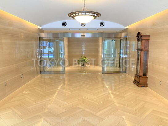 基準階貸室面積は約126.87坪、基準階天井高は2500mm、室内中央部に柱がなく、お手洗い等の共用部は執務室の外に配置されており、レイアウト効率の高い空間となっています。機械警備・個別空調・OAフロア・男女別トイレ等の設備仕様となっています。