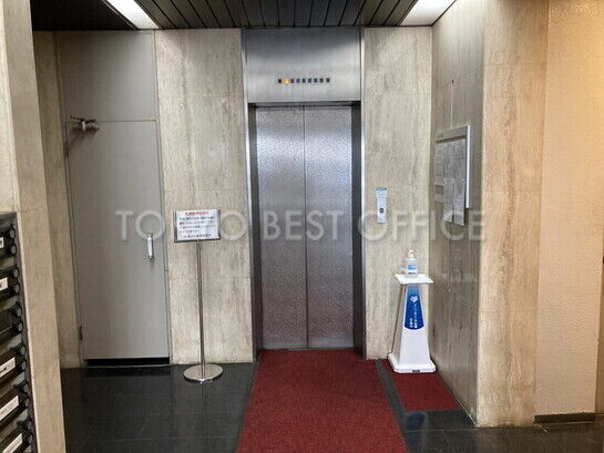 各階大小2つの執務室があり、エレベーターホールやお手洗いなどの共用部は執務室の外に配置されています。室内内部には柱がないため、レイアウト効率も良好です。機械警備・個別空調・男女別トイレの設備仕様です。