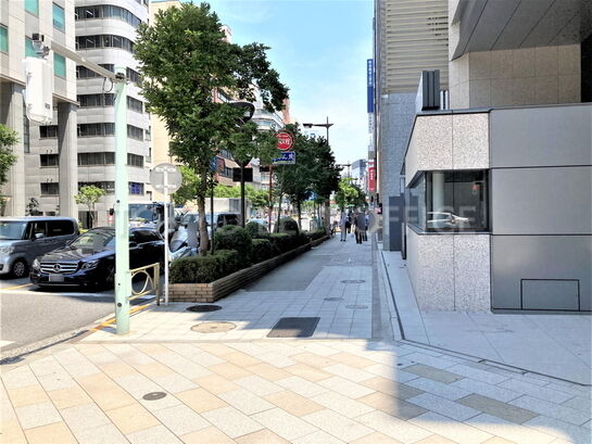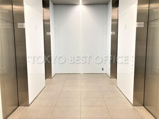 基準階貸室面積は約455坪、基準階天井高は2800mmです。貸室はL字型で室内内部に柱のない、レイアウト効率の高い空間となっています。お手洗い等の共用部は執務室の外に配置されています。機械警備・OAフロア・男女別トイレの設備仕様となっています。