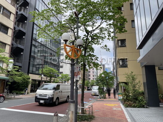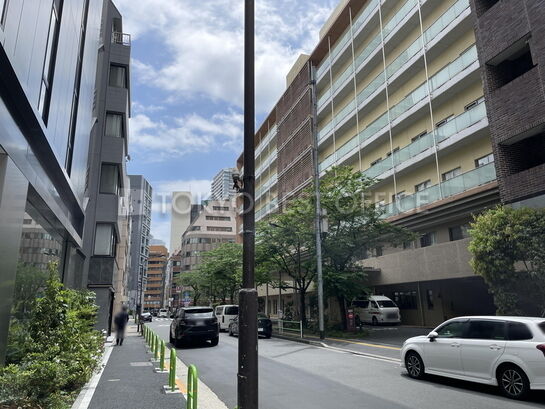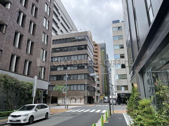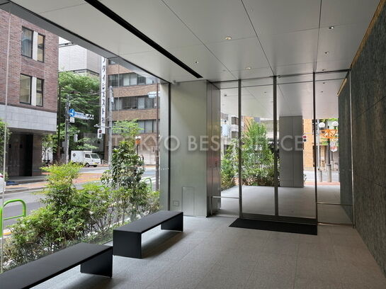 赤レンガ通りに面した角地に立地。洗練されたガラスカーテンウォールの外観が特徴です。建物の規模は地上9階建て、エレベーターは計2基設置されています。