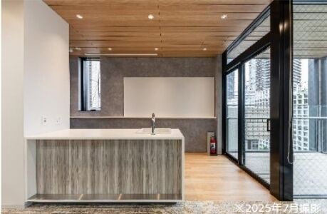 基準階貸室フロア面積は約91.98坪、天井高2.8mの明るく開放的な無柱空間。グリッド天井でレイアウトも自在。空調は1フロア6ゾーンの個別空調方式です。各階にグリーン大通りを望むバルコニーがあり、執務室とオープンパントリーが連続し開放的な印象の空間。リフレッシュやコミュニケーションゾーンとして活用できそうです。