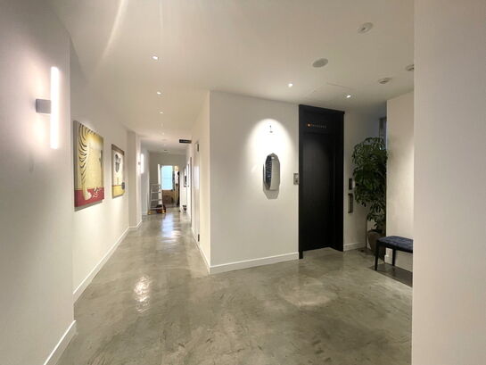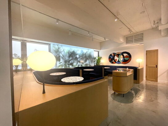 1階エントランスを一歩入ると目に入るのは、50点以上のアート作品が並ぶ圧巻のギャラリーウォール。その奥には音楽が流れるラウンジスペースが広がります。サロンのような打合せスペースは広々としており、Wi-Fiや来訪者用クロークも完備。コミュニティーパントリーには、給湯・製氷機・冷蔵庫・コーヒーサーバー等も。