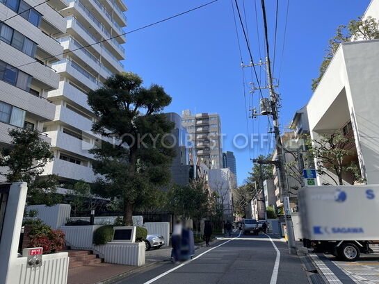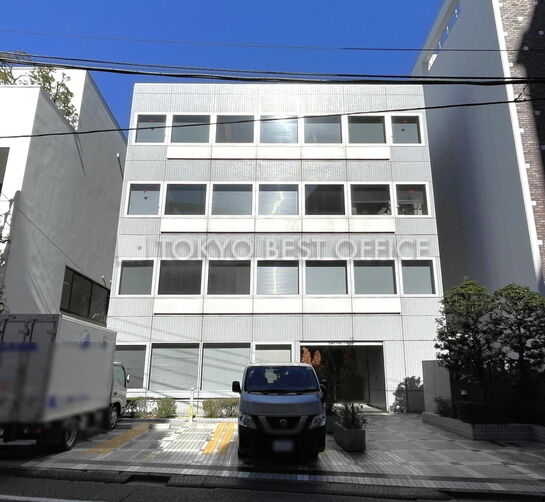 石張りの高級感ある外観のオフィスビです。