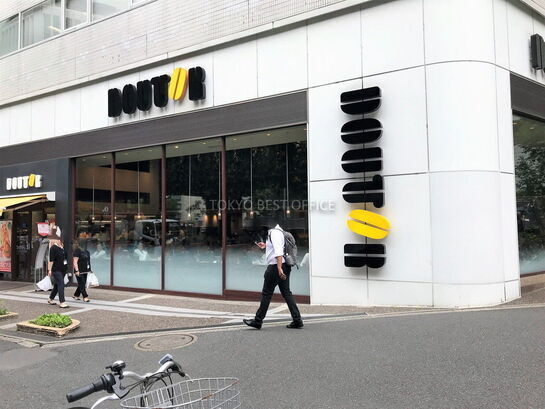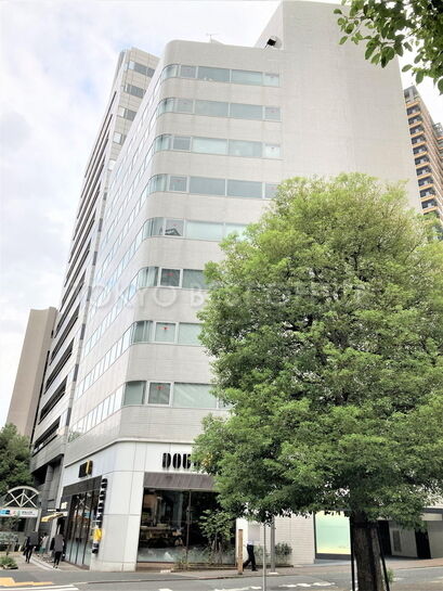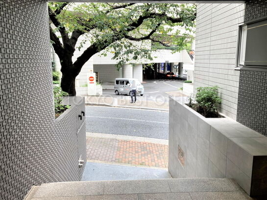 六本木通り沿いの国際色の高いエリアに立地。1階はカフェ(ドトールコーヒー)。