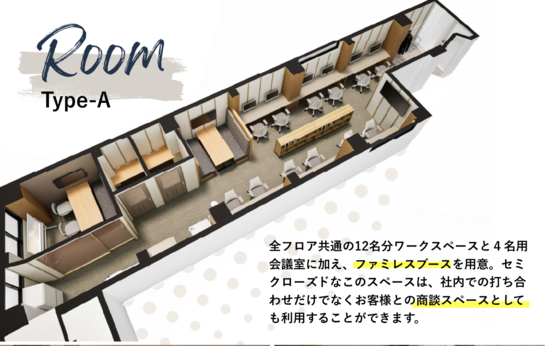 Aタイプ(5、8階)は会議室が奥にあるタイプとなっております。お気軽にお問い合わせください。