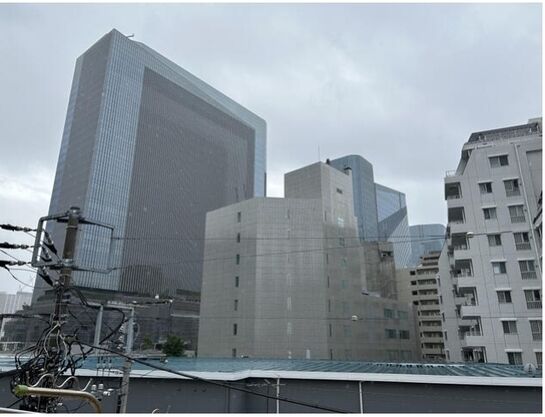 3階のスカイルーフのバルコニーの眼前には高輪ゲートウェイシティのメインタワーの景色が広がります。 ますます便利になった高輪・泉岳寺はおススメのエリアです。お気軽にお問合せください。