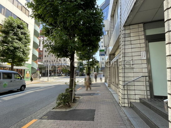 新宿御苑前駅出口のある交差点の角地に立地し、1階がコンビニ(ファミリーマート)が入居しておりますので、視認性の良さと交通利便性に優れたオフィスです。