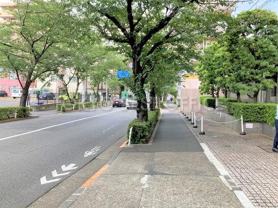 駅前立地で利便性も高く、山手通りも近くにあります。外観はガラス張りでしっかりとした印象です。ビルは機械警備と24時間有人管理体制、冠水の恐れのない堅固な地盤に立地する点も特長です。エレベーターは乗用2基(15人乗り・1000㎏)・貨物用1基(44人乗り・2900㎏)あります。