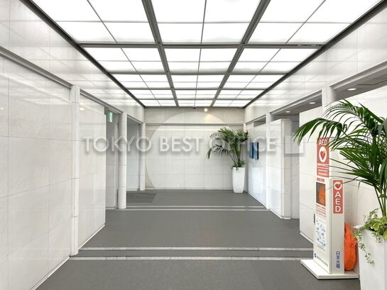 基準階貸室面積は約218坪(分割募集の場合あり)、基準階天井高は2520mm、機械警備・個別空調・OAフロア・男女別トイレ等の設備仕様です。エレベーターホールやお手洗いなどは執務室の外に配置されており、使いやすい空間となっています。