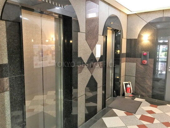 エレベーターは2基あります。基準階坪数は89.6坪、基準階天井高は2600mmです。