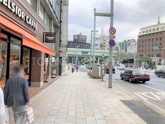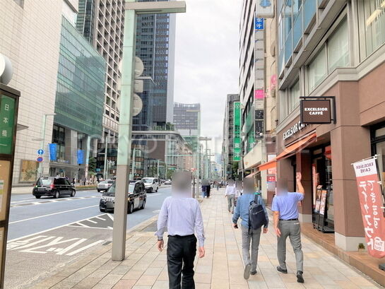 日本橋交差点近く、中央通り沿いに面しており、1階はカフェ・エクセルシオールで視認性に優れたビルです。