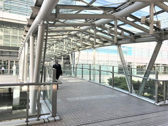 建物は1996年3月竣工、規模は地上9階・地下2階建てです。エレベーターは12基あります。2階には展示会や発表会などに利用できるホールが3つあります。2階フロアからデッキにて東館へ接続しています。